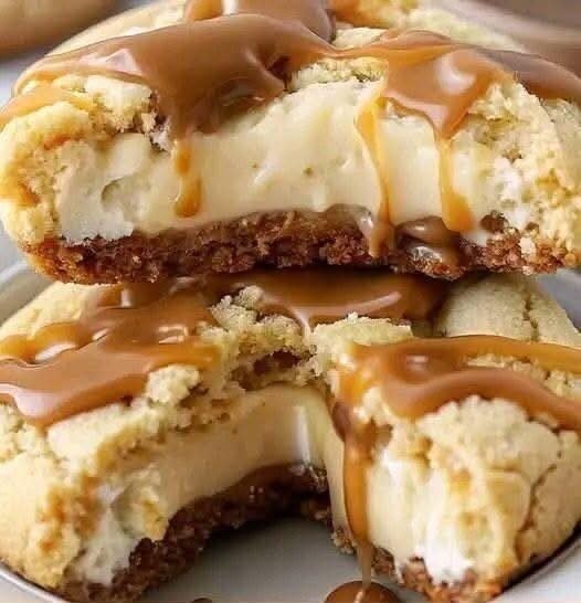 These decadent cookies feature a soft, buttery cookie base, a rich and creamy cheesecake center, and a drizzle of sweet caramel sauce. They’re an irresistible treat for cheesecake and cookie lovers alike!